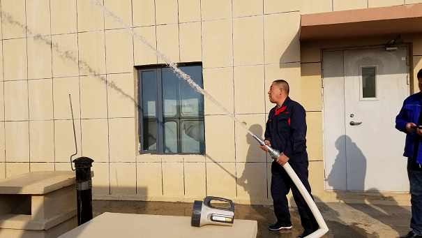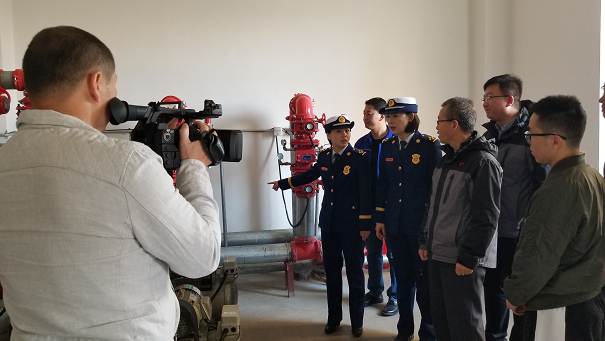 取景地點主要是有監(jiān)控室、報警閥室和消防高位水箱間。在拍攝期間城發(fā)房地產(chǎn)公司工程處處長趙國棟和暖通專業(yè)工程師楊建剛詳細介紹了消防聯(lián)動控制器是如何監(jiān)控火情后反饋信息,又是如何處理后續(xù)問題的運行程序以及高位水箱穩(wěn)壓系統(tǒng)的工作原理。最后,在樓頂測試了消防給水系統(tǒng)的給水壓力是否達標。測試結果達到了10m充實水柱的標準。