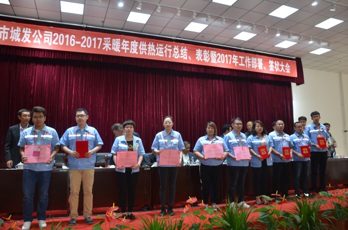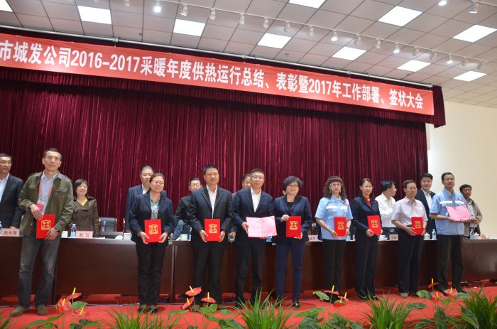 會(huì)上,吳利勤副總經(jīng)理作《呼市城發(fā)供熱有限責(zé)任公司20162017采暖年度運(yùn)行總結(jié)》報(bào)告;黨委副書(shū)記張永宣讀《城發(fā)公司黨委關(guān)于表彰2016年度先進(jìn)集體、優(yōu)秀干部和勞動(dòng)模范(先進(jìn)工作者)的決定》,授予辛家營(yíng)分公司等18個(gè)單位呼市城發(fā)公司2016年度先進(jìn)集體、吳利勤同志呼市城發(fā)公司2016年度優(yōu)秀高層干部、呂曉玲等15名同志呼市城發(fā)公司2016年度優(yōu)秀中層干部、李娟等77名同志呼市城發(fā)公司2016年度勞動(dòng)模范(先進(jìn)工作者)榮譽(yù)稱(chēng)號(hào),并頒發(fā)獲獎(jiǎng)證書(shū);總經(jīng)理呂德育與內(nèi)蒙古少數(shù)民族群眾文化體育運(yùn)動(dòng)中心項(xiàng)目等負(fù)責(zé)人簽訂責(zé)任狀。