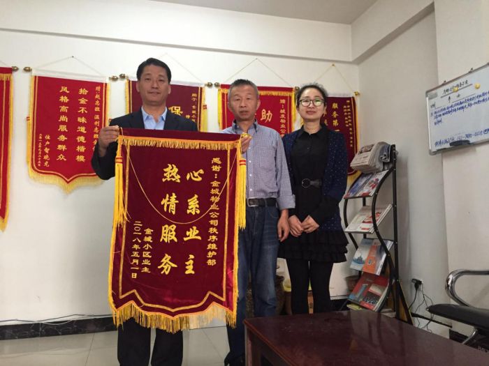 在大家的共同努力下,物業(yè)服務(wù)品質(zhì)提升百日行動工作得到了業(yè)主的好評與支持,項(xiàng)目處先后收到業(yè)主送來的三面寫有急業(yè)主所急 幫業(yè)主所需、心系業(yè)主 熱情服務(wù)、服務(wù)第一全心為民 客戶至上暖至人心的錦旗。