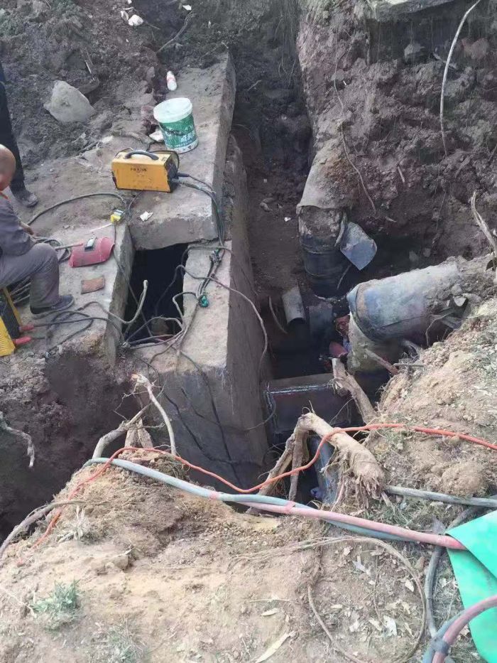 11月11日下午,中繼泵房專項(xiàng)高壓電閃落,1#、2#、3#循環(huán)泵因自動(dòng)保護(hù)驟停。出現(xiàn)異常后,調(diào)度立即通知京能電廠降頻,檢修車間立即組織人員進(jìn)行巡線,經(jīng)過15個(gè)小時(shí)不間斷排查,12日上午,發(fā)現(xiàn)如意舊網(wǎng)主線和1#站支線漏水嚴(yán)重。分公司檢修車間、運(yùn)營二所和保駕護(hù)航單位迅速制定搶修方案組織搶修,經(jīng)理丁成斌、副經(jīng)理鄭紅飛親自到現(xiàn)場指導(dǎo)搶修工作。為準(zhǔn)確找到失水點(diǎn),搶修人員穿著隔熱服進(jìn)入管溝內(nèi)查找漏點(diǎn)。由于漏水點(diǎn)管線錯(cuò)綜復(fù)雜,施工難度非常大。接近管道時(shí),發(fā)現(xiàn)漏點(diǎn)位置靠近井壁且管道腐蝕嚴(yán)重,壁厚較薄,采取整理外層補(bǔ)焊的方式進(jìn)行修補(bǔ)。